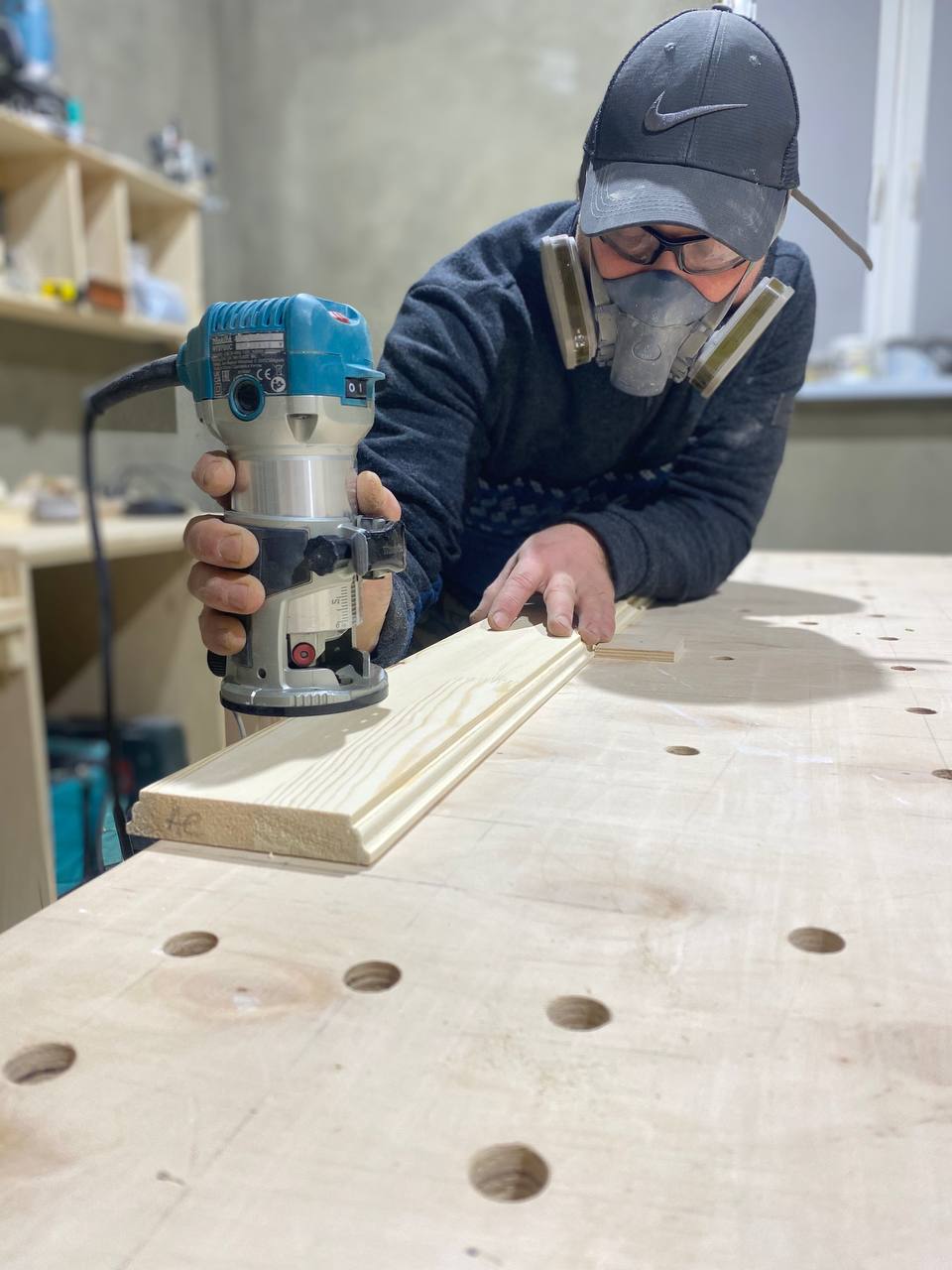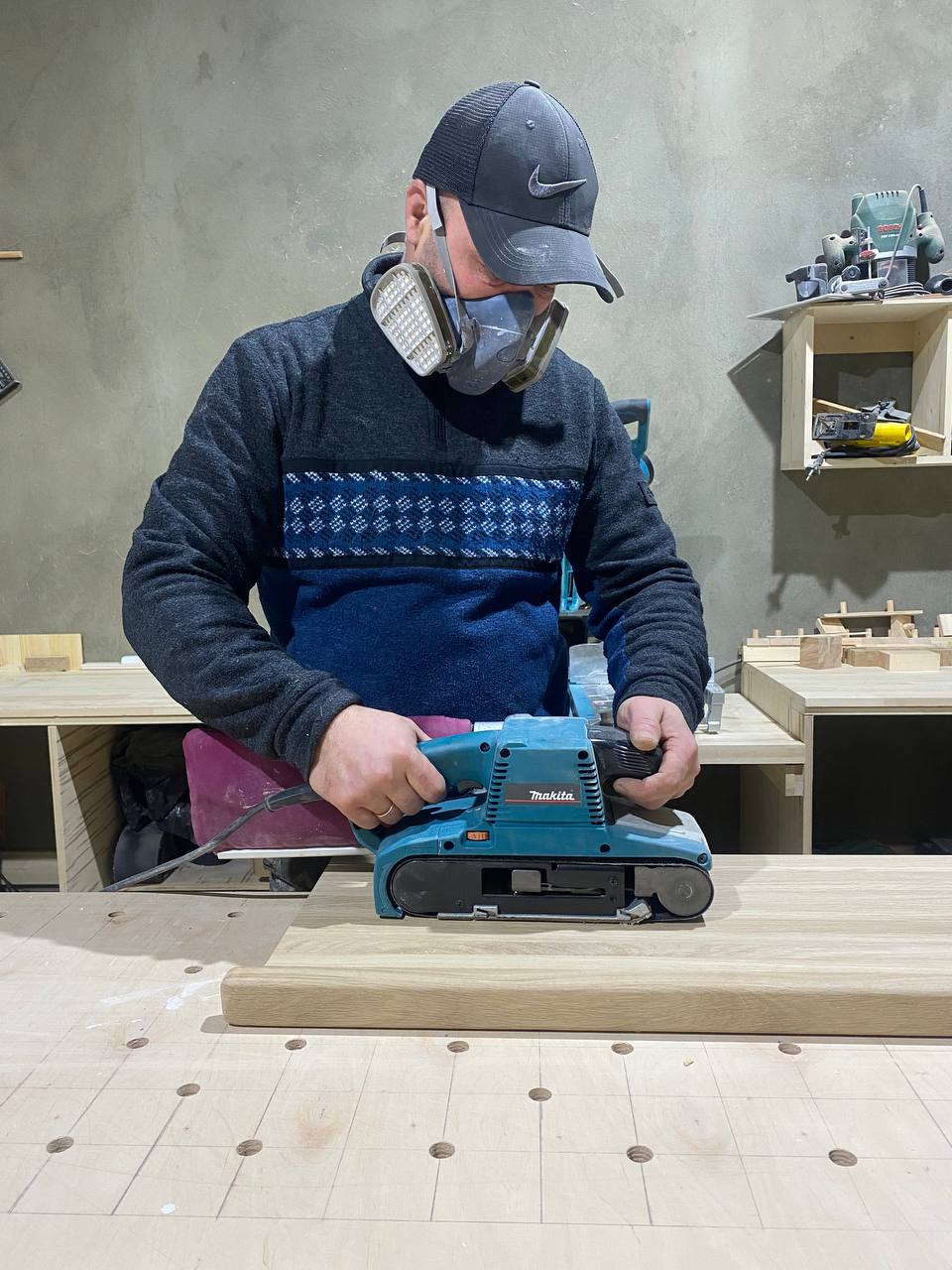 Детали лестницы производятся в цеху, а не на объекте. Включает подготовку материалов (сушка древесины, нарезка заготовок), изготовление ступеней, подступенков, каркаса, перил и других элементов.