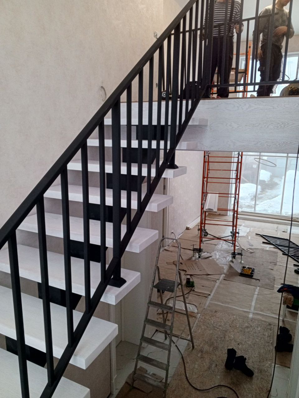Лестницу устанавливают на объекте. Обычно начинают с каркаса, затем монтируют ступени, подступенки, ограждения, плинтусы и другие элементы. Важно, чтобы монтаж выполнялся аккуратно, без повреждения стен и пола